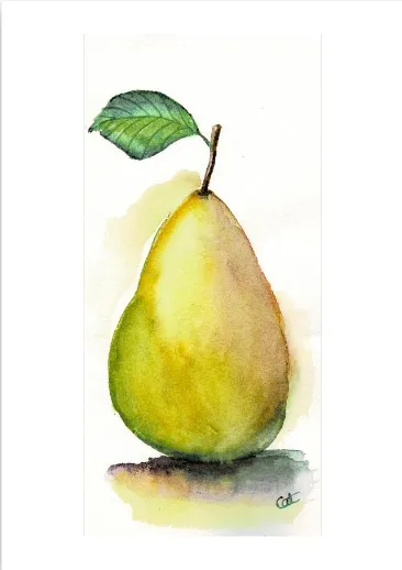 Une impression sur papier d'art de mon aquarelle "Poirette au Soleil". Disponible en plusieurs formats et avec ou sans cadre.