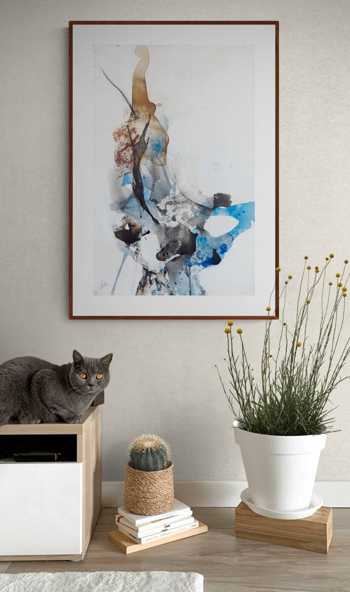 Mixed media, oil, acrylic. LA DONCELLA, a typical colorful fish from The Mediterranean Sea. Just beauty, that brings peace, and a sense to life.... The Mediterranean rainbow wrasse (doncella in Spanish) is a small, colorful fish in the family Labridae. It can be found in the Mediterranean Sea and in the northeast Atlantic Ocean from Sweden to Senegal. Common name: Maiden or Julia fish. Scientific name: Coris julis. Characteristics: Proteroginic hermaphroditism: Females when they reach a certain size can become males. The female and primary males have more dull and less bright brown colorations, when the females become males (secondary or terminal males) they acquire more vivid and striking reddish-orange colorations to attract the female's attention during the breeding season.