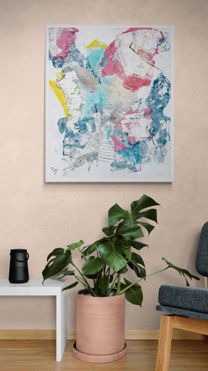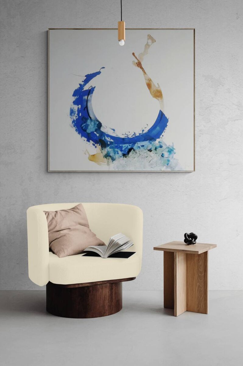 This artwork is the Mediterranean, the emotions that could be extracted from being a year feeling enclosed and the actor of an unbelievable thriller, which is this pandemic we are all in, together. A change of perspective is always refreshing, abstract can mean one thing one day, another thing the day after. It allows us to be adaptable. As we are meant to be.